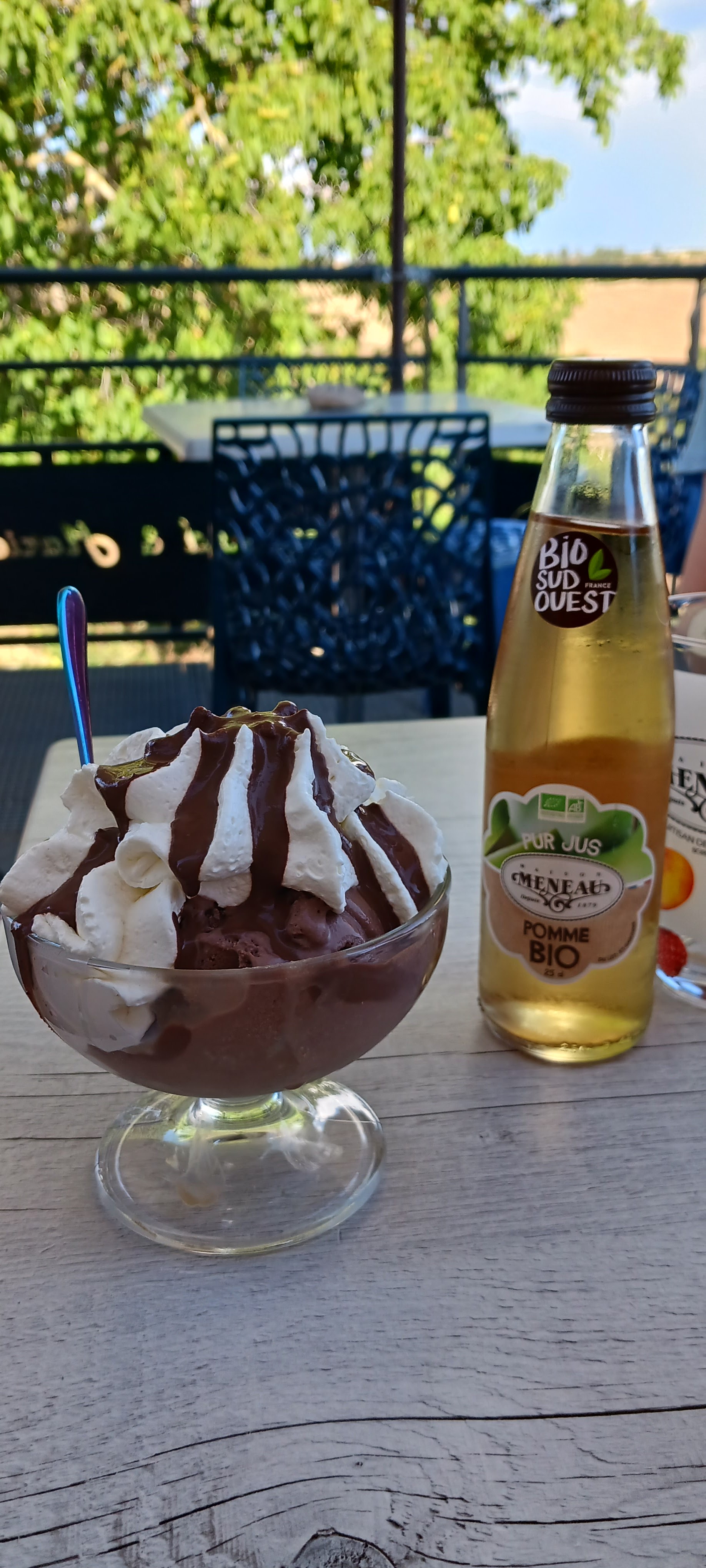 Super moment, super concept avec cette belle terrasse avec vue sur le causse. J'ai goûté la crêpe glace chantilly, best life. Prix raisonnable 7 euros. Service efficace. Je recommande.