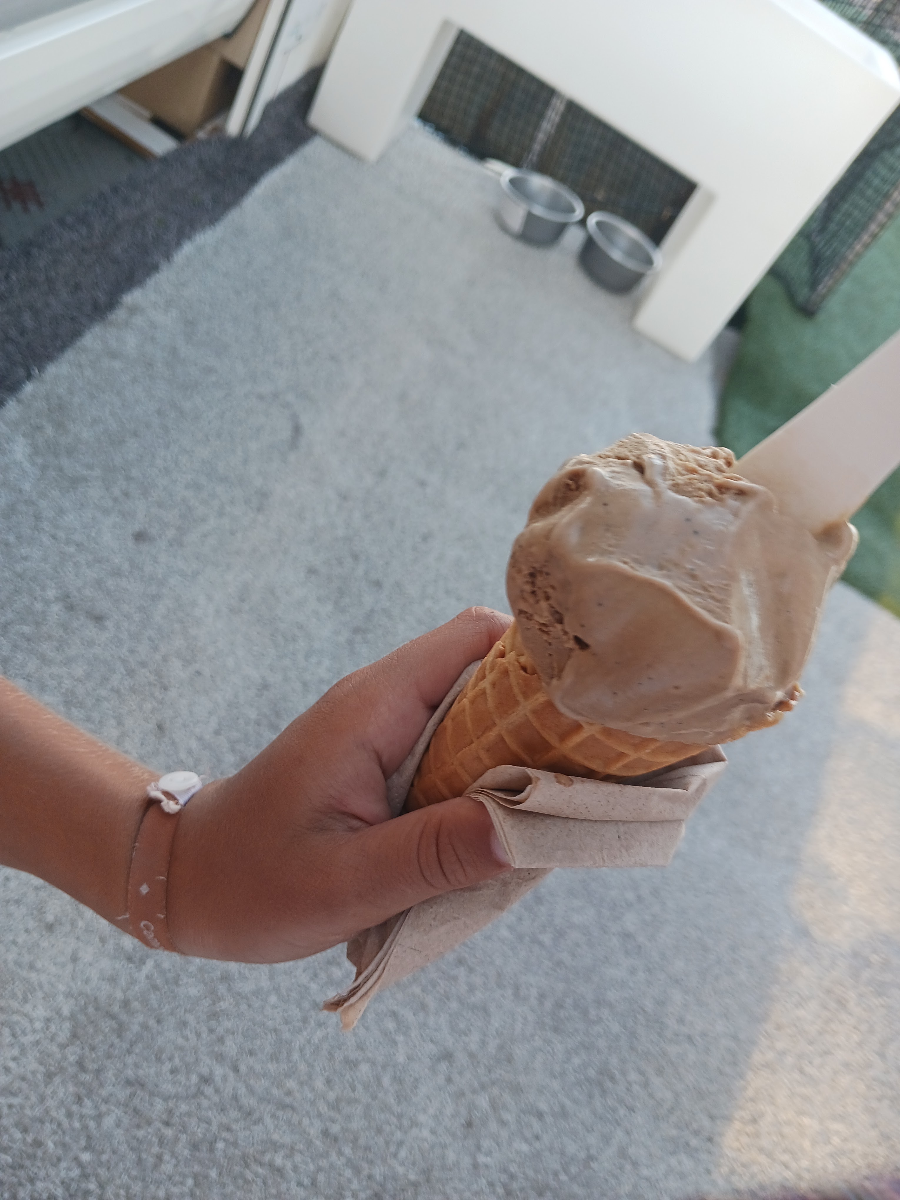 Nous sommes devenus exigeants en glaces depuis quelques années. Les glaces du glacier flottant sont excellentes, peu sucrées, goutues. Depuis que nous y avons goûté, nous y retournons chaque jour.