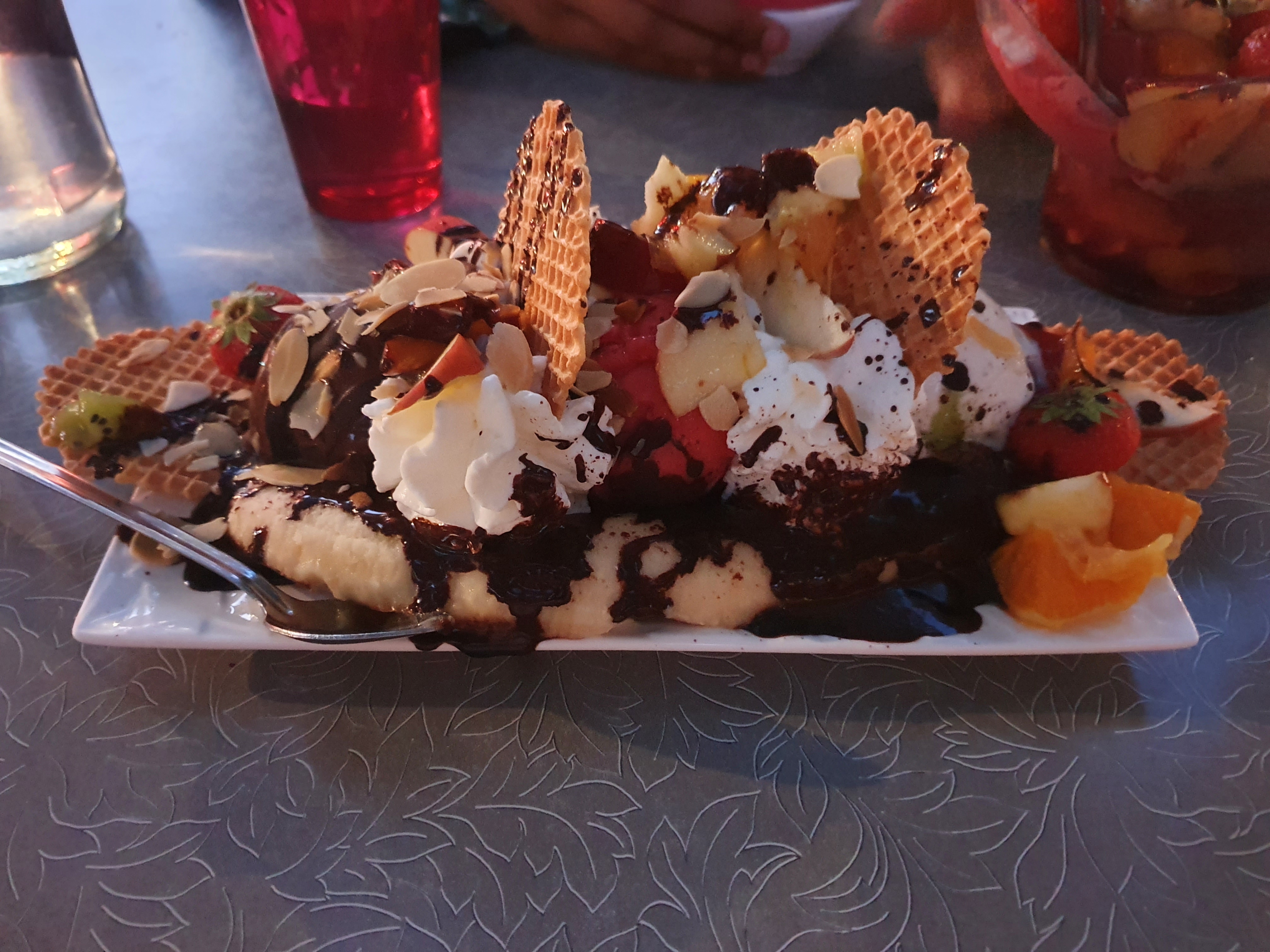Le banasplit bon, généreux et digne de ceux de mon enfance. Serveur atypique, très agréable et professionnel. Nous reviendrons en famille.