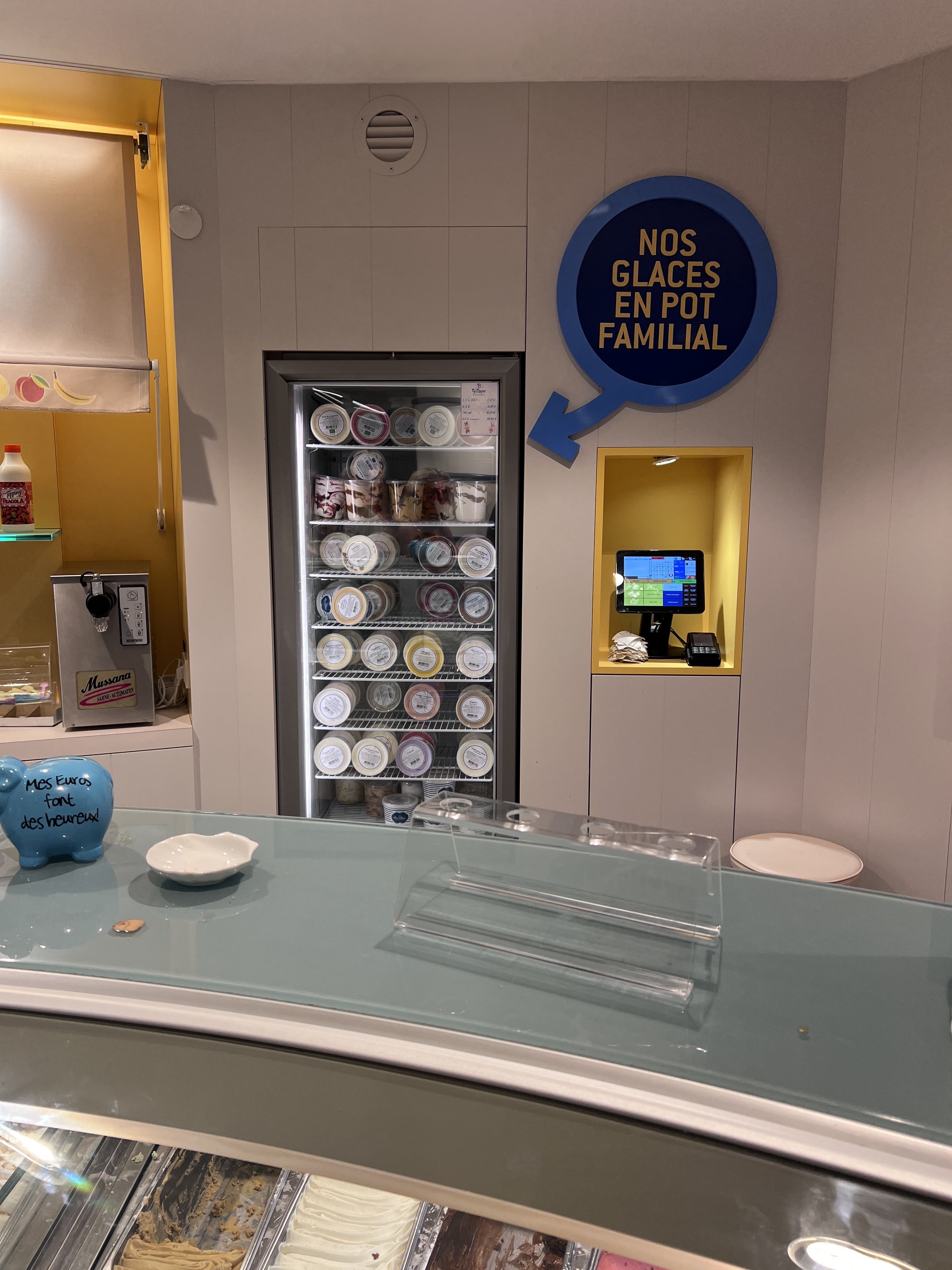 Pas foule aujourd'hui à notre arriver , super car sa nous laisse vraiment le temp de choisir les parfums , file pour glace italienne , file pour les autres glaces , une seule entrée mais très bien aménager, on se repère facilement Superbe équipe
